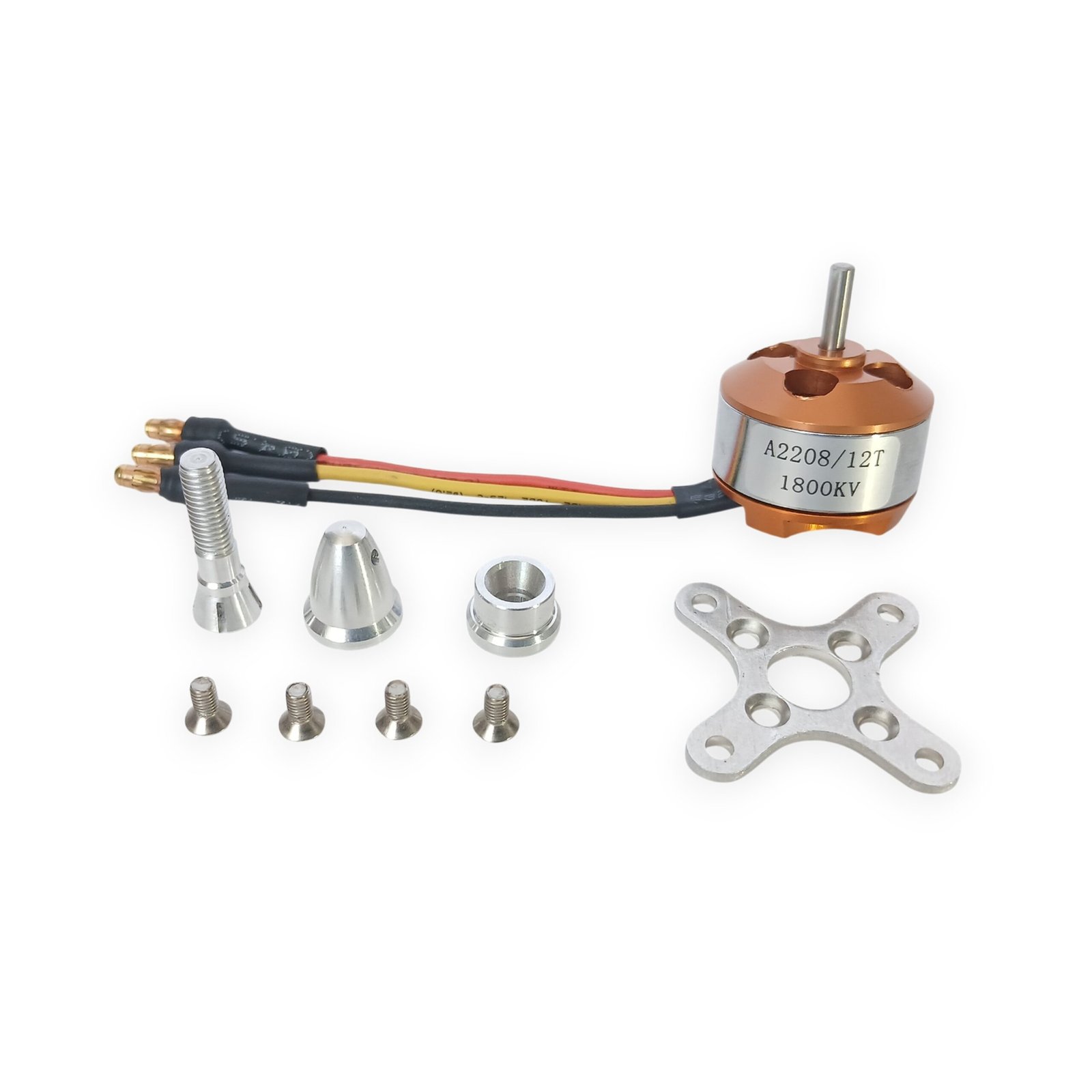 1 x A2208 1800KV Fırçasız Motor 1 x Pervane Aparatı ve Somunu 1 x Motor Montaj Aparatı 4 x Motor Montaj Vidası |