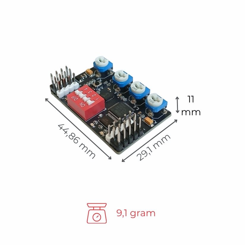 1 x Temel Kullanım Kartı (TKK) 1 x 3 Pin RC Giriş Kablosu + 4 Pin RC Giriş Kablosu (Alıcı Bağlantısı için) 1 x Plastik Mini Ayarlama Anahtarı 1 x 3M BantKart, koruyucu kasasıyla birlikte takılı halde gelir. |